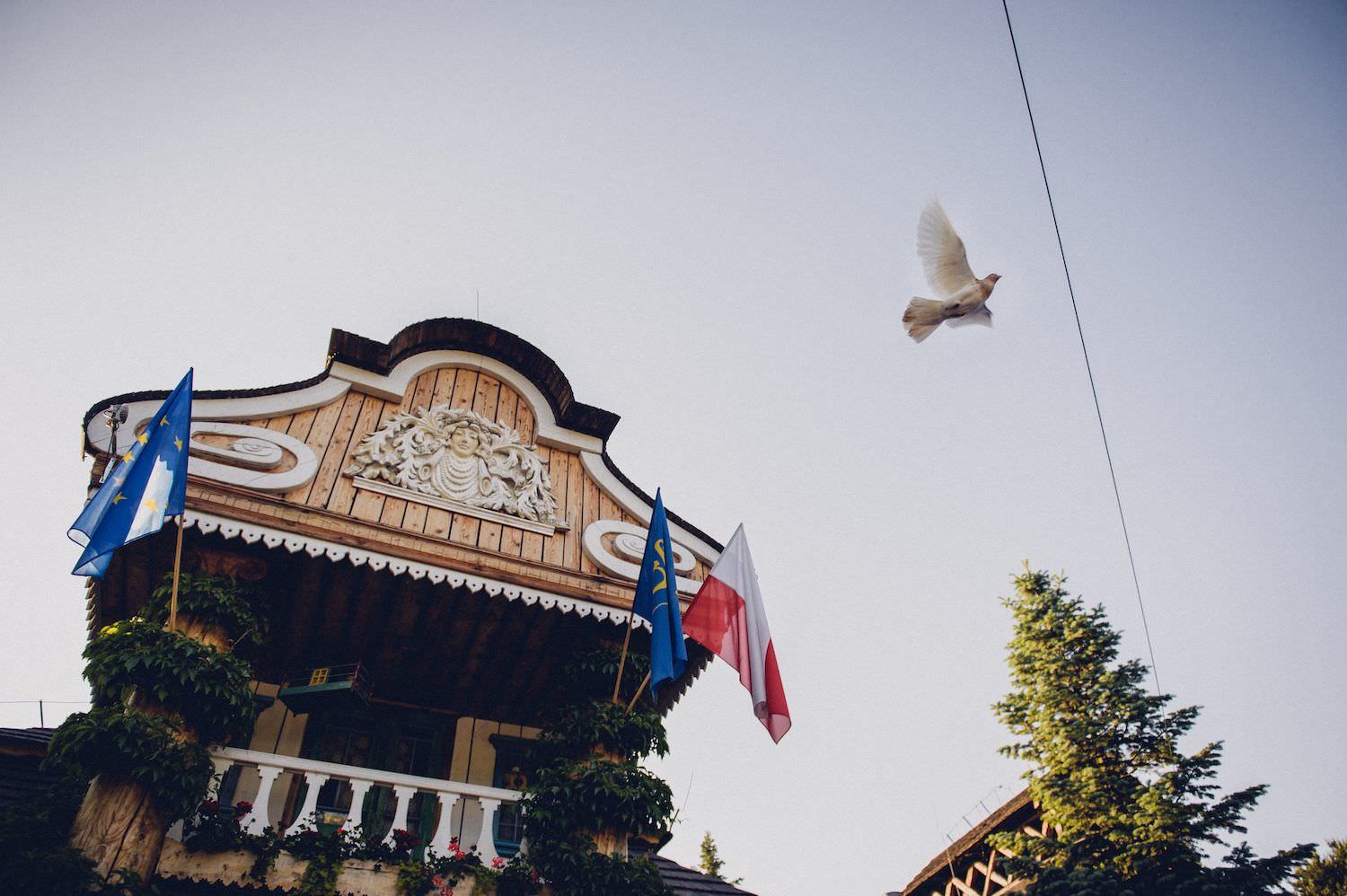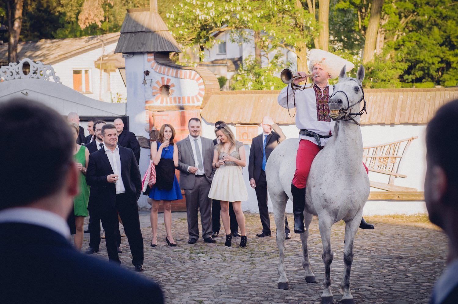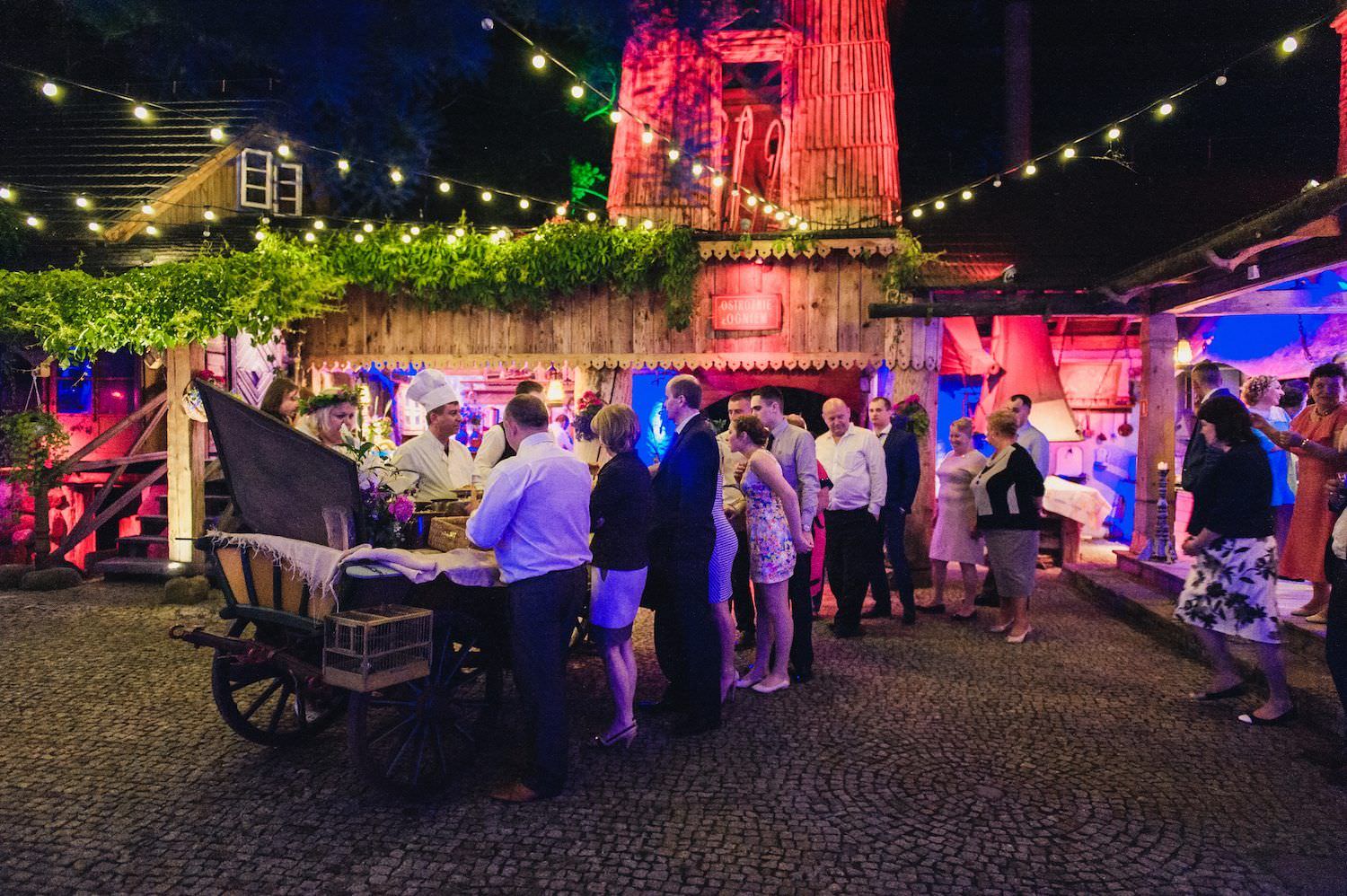 The wedding party began with the traditional welcome of the bride and groom, and pigeon finishing. All the fun took place in a traditional inn where traditional Polish dishes were served straight from old stoves.