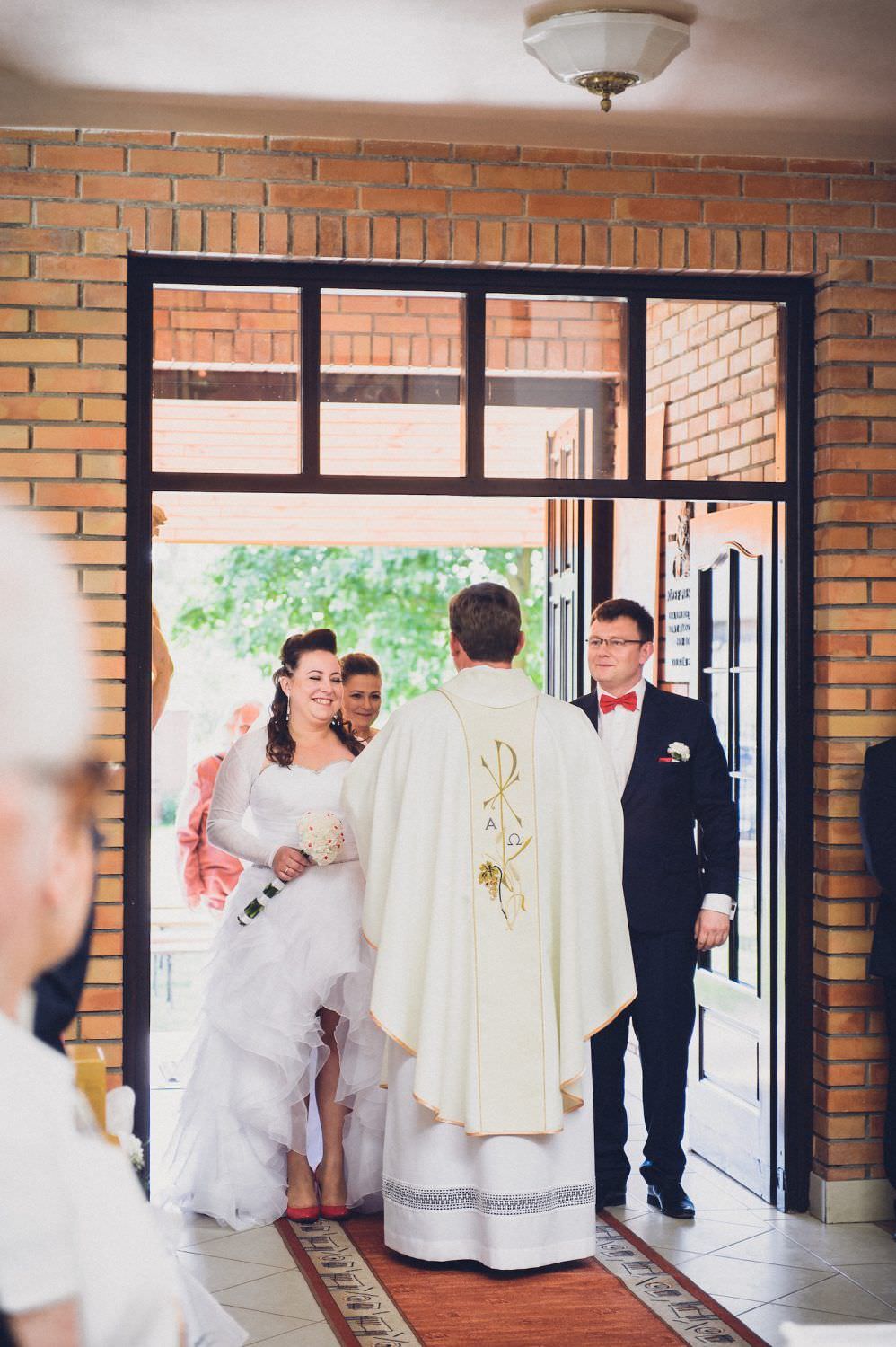 The wedding ceremony took place in a small church near the Zegrze lake.